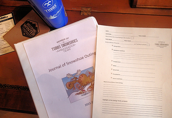Last winter, while on a snowshoeing trip to western Maine, I visited one of my favorite outdoor gear stores in Rangeley, ME. There, I picked up a commercially published canoeing journal; I have always kept a casual log of my bicycling activities, and note my hikes on the calendar…but I had never seen a canoeing journal before. Well, I surprised myself, and kept up this journal for all 6 months of the paddling season, and found that I really enjoyed documenting our adventures. Now that snowshoeing season is around the corner, I realized that such a journal for winter activities could also be useful…helpful in writing my blog entries, documenting what we learn about trails, and monitoring my progress through the season. Alas, no such published journal could be found, so I have developed my own “Journal of Snowshoe Outings.”