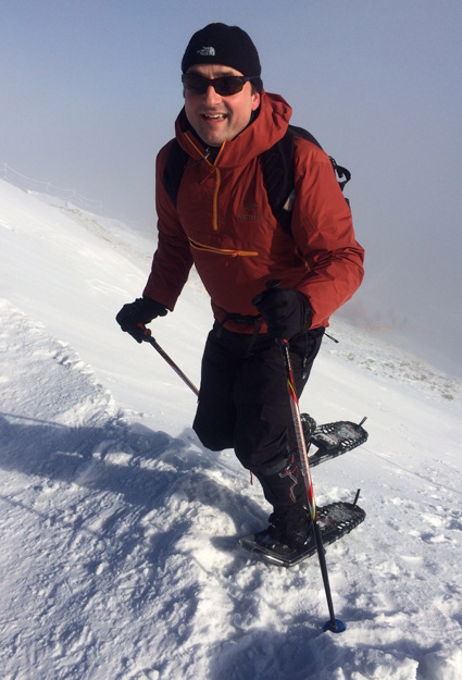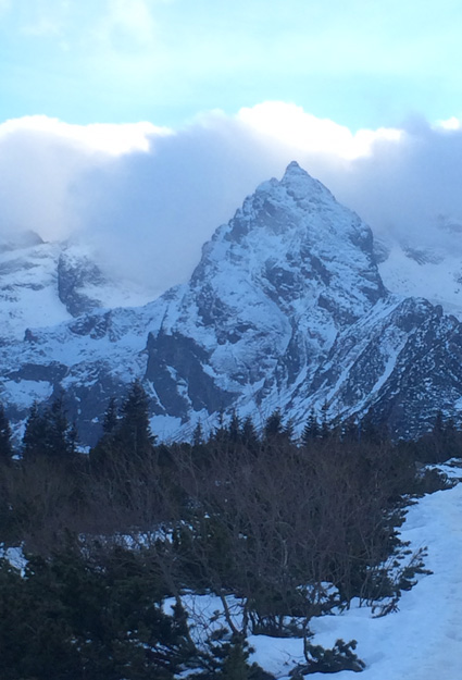 It tasted just as I remembered it form 30+ years ago…the subtle smell of raspberries was emerging from a steaming white mug of black tea with locally made juice. It was a treat indeed. Like true mountaineers, we recovered our brown bag lunches from our backpacks and we had a feast! Given the holiday season, we enjoyed some goodies only made at this time of the year such as my Mom’s game pate – conveniently sandwiched between crusty slices of the local bread. It was almost 2pm and it was time to start our return as the days were still short and it was getting dark around 4:30pm. The snow conditions around the lodge (elevation 1500 meters) were much worse than on the top and we decided to continue our journey on foot. Trekking poles were essential as the trail was periodically icy. The weather, however has improved significantly in the afternoon, and we now enjoyed the views of many peaks we summited as teenagers. It was quite a trip along the “memory lane”. Aldona is a great companion and a former scout. We have created many wonderful mountain memories together and this snowshoeing outing (first one ever for her) will be added to our special library.